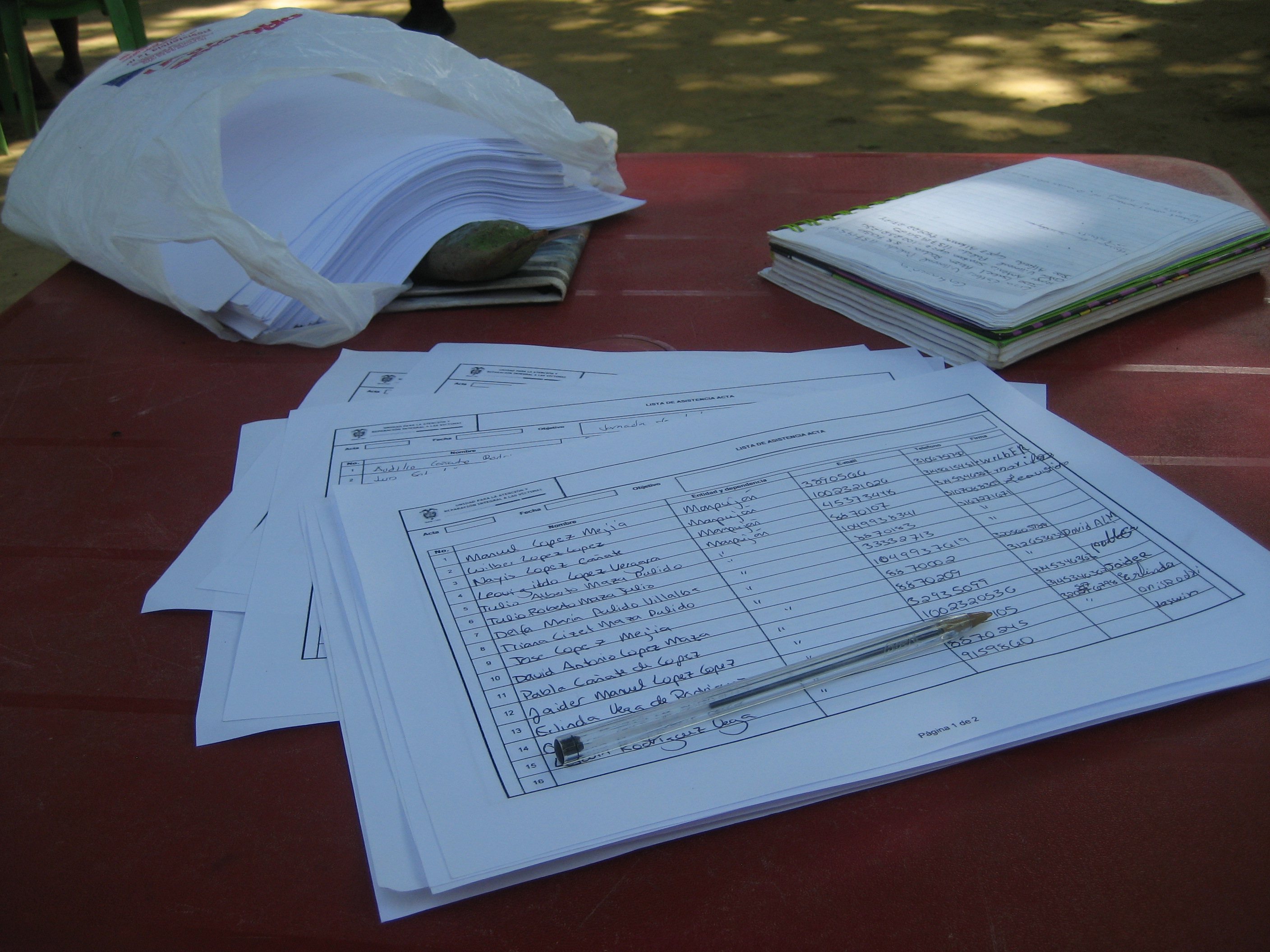Behind the scenes, community leaders and the Unidad were frantically dealing with more paperwork problems. When a Colombian turns 18, they are supposed to get a Cedula, a national identity card, with their number on it, which they will use for all important transactions in their life. They can apply for this card at the notary in most municipalities, and it should be ready a few weeks after applying. A new card can also be issued if the old card is lost, and a temporary contrasena is issued while they wait. The problem is that the notary in Marialabaja is extremely incompetent at handing out cards- some people have been waiting for over six years. In some instances, instead of doing the right paperwork, people are given a new card with a new number. However, possessing a double cedula is a crime. Additionally, anyone with a constrasena cannot receive reparations. So, we spent a lot of time making a list, sending it to the Unidad, getting people to go to Cartagena for special meetings with a different notary, and much more paperwork. It’s still not that effective- just last week, someone showed up at my house with a new number, which means the paperwork needs to happen all over again.