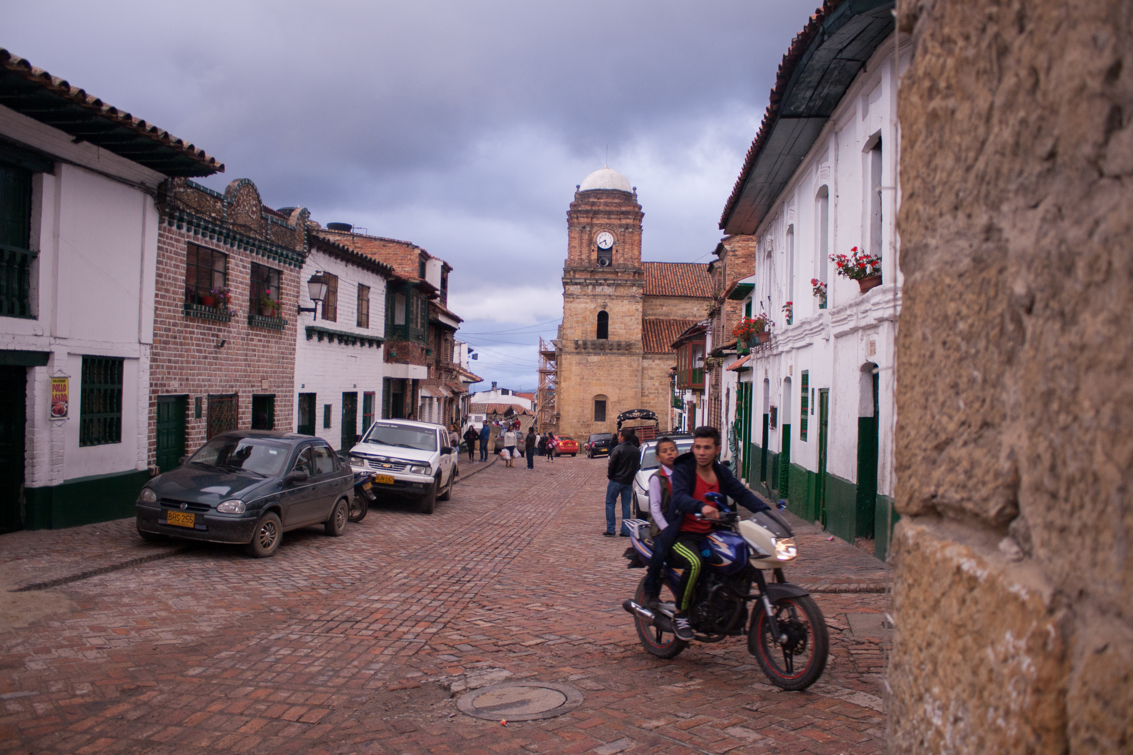 March 2015 070 Mongui, Boyaca, is truly beautiful. This admission comes as no surprise to its residents. After all, they proudly proclaim, the town has been declared, year after year, as the most beautiful pueblo in the department. The streets and the cobblestone plaza are lined with colonial buildings painted in green and white and adorned with geraniums hanging in clay pots. The picturesque town is only made more lovely by the beauty of the surrounding countryside, filled with lush green fields and farmsteads. The people are calm and polite, friendly but still reserved. Everyone uses usted and Andean formality is expressed in every gesture and greeting.